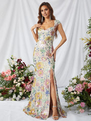 weitese's Elevate your glamorous look with this multicolor floral sequin mermaid maxi dress. It features a sweetheart neckline with delicate cap sleeves for refined allure, vibrant sequin floral detailing for opulent charm, and a high side slit for modern flair. The figure-hugging mermaid silhouette ensures a sculpted finish, making it perfect for red carpet events, formal galas, or any occasion where you want to blend artistic vibrancy with timeless sophistication.