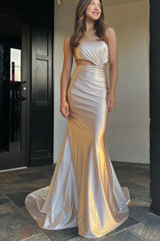 Robes de soirée/Robes de bal sirène asymétriques en satin de soie champagne/Boutique de robes de bal
