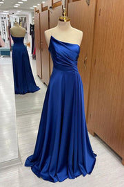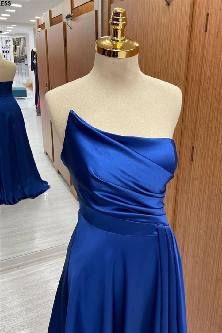 Robes de soirée/Robe de bal longue plissée sans bretelles en satin bleu roi/Magasins de robes de bal