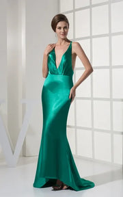 Robe de bal sirène décolletée en satin avec ourlet asymétrique et traîne à dos nu