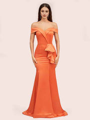 Robe Weitese élégante en satin doux, style sirène, épaules dénudées, longue, unique, couleur unie, à volants, robe de bal - US 2 / UK 6 / UE 32