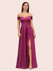 Robe de soirée sexy en satin plissé, épaules dénudées, fente latérale, coupe trapèze, longue et douce - US 2 / UK 6 / UE 32