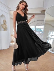 Robe de soirée trapèze Weitese, élégante, tenue de soirée formelle, longueur cheville, sans manches, bretelles spaghetti, mousseline de soie avec paillettes, couleur pure - US 2 / UK 6 / UE 32