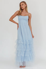Robe Weitese dos torsadé, volants, tulle, maxi, bretelles spaghetti, bleu acier, robe de soirée dos nu - Bleu acier / US 2 / UK 6 / UE 32