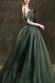 Robe de bal longue et élégante à épaules dénudées, coupe trapèze, vert foncé, Weitese - US 2 / UK 6 / UE 32