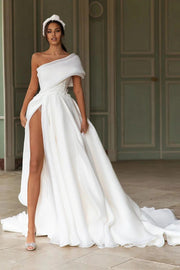 Robe de bal Weitese en magasin, robe de mariée trapèze à épaules dénudées et fente haute