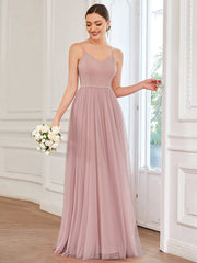 Robe de demoiselle d'honneur trapèze en tulle à bretelles spaghetti et décolleté en cœur Weitese