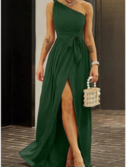 Robe de soirée Weitese pour femme, robe d'invitée de mariage, robe fourreau, robe trapèze, mini robe rouge verte, sans manches, couleur unie, dos nu, hiver, automne, printemps, une épaule, mode, soirée - US 2 / UK 6 / UE 32