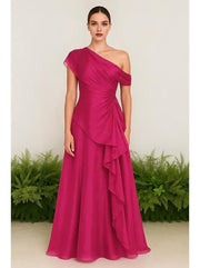 weitese's chic fuchsia gown features a one-shoulder neckline (with a draped off-the-shoulder detail), lightweight chiffon fabric, a ruched bodice, and a flowing A-line maxi skirt (paired with a layered ruffled overlay). The vibrant hue and soft silhouette balance bold charm with feminine elegance—ideal for bridesmaid events, wedding receptions, or formal daytime gatherings. Its eye-catching color and textured design create a versatile, refined look.