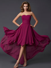 A-Line/Princess Sweetheart Sleeveless Pleats High Low Chiffon Dresses